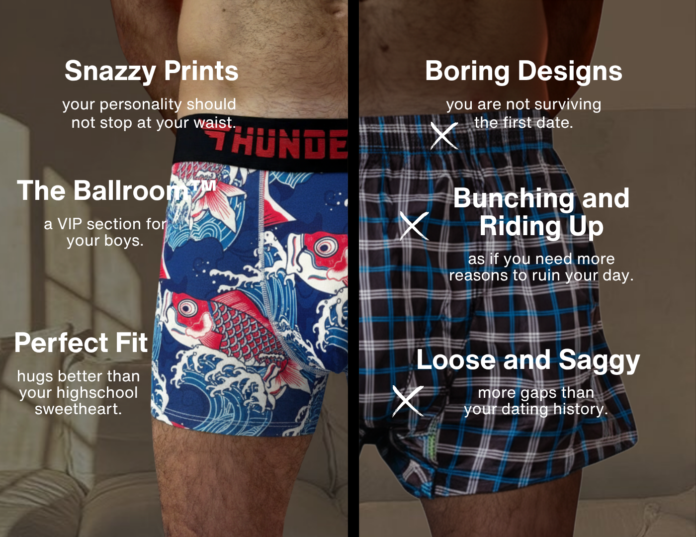 Fresh THUNDIES and, or SHOCKS at your door every month. No malls. No laundry panic. Just the 4 C’s on lock — Comfort, Convenience, Confidence, and Cooling.