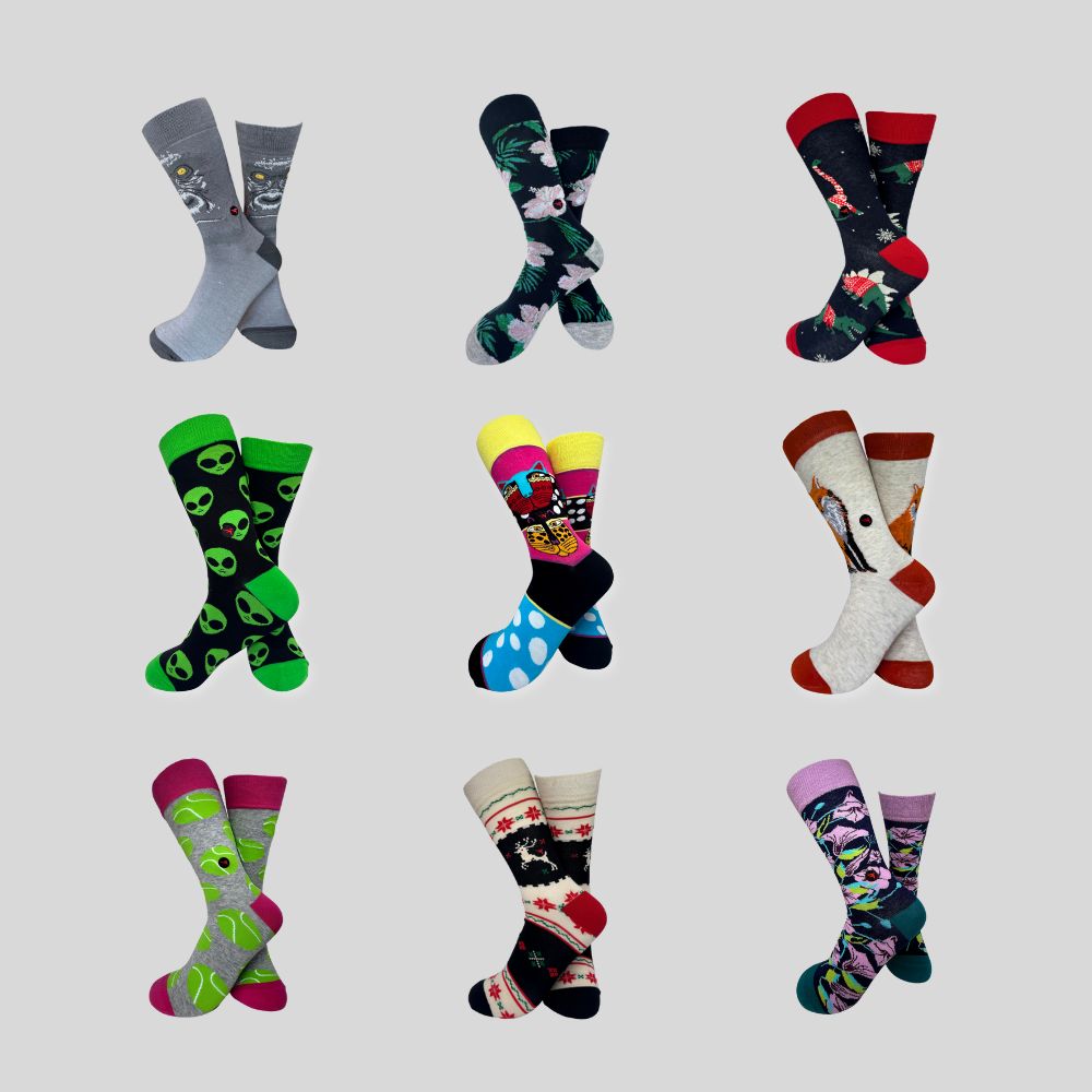 Comfortable, fulfilling, bold and beautiful cotton and spandex, adult, unisex socks, handpicked by our sock tailor, will be delivered to your doorstep.