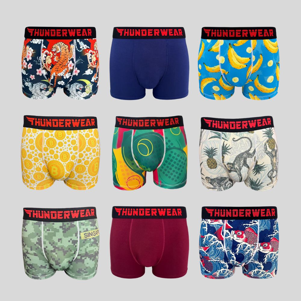 Among many bold colours, be confident knowing you're decked out in defining, mid-rise, odour wicking, ThunderWear energised boxer briefs.